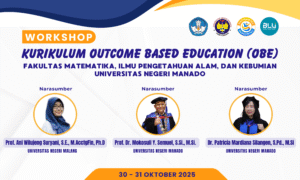 Tondano, 30 Oktober 2025 – Fakultas Matematika, Ilmu Pengetahuan Alam, dan Kebumian (FMIPAK) Universitas Negeri Manado resmi membuka kegiatan Workshop “Outcome Based Curriculum (OBE)” pada Kamis, 30 Oktober 2025. Workshop ini bertujuan memperkuat pemahaman dosen terhadap penyusunan dan implementasi kurikulum